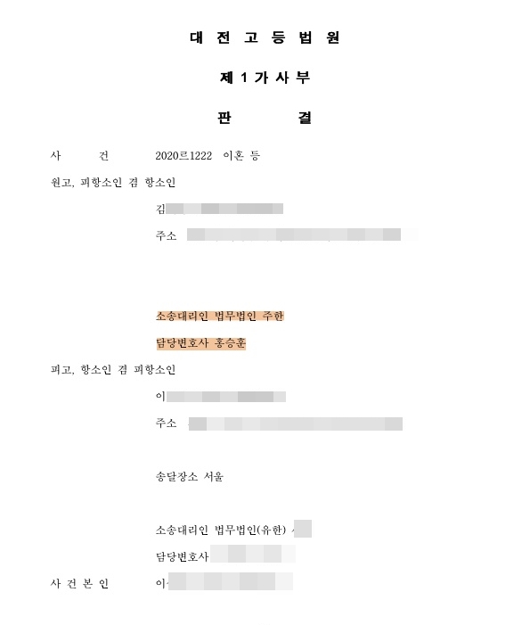 - 의뢰인은 남편의 부정행위를 이유로 이혼소송을 제기하였음.