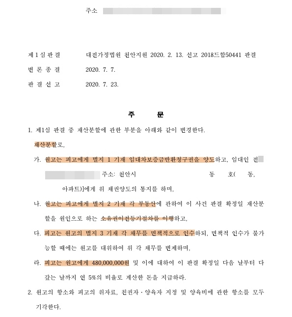 | 판결문 상 인정된 부부 공동재산 약 17억원의 40%인 6억 9,000만원을 재산분할로 인정받은 사건(재산분할금 정산액 4억 8,000만원) | ||